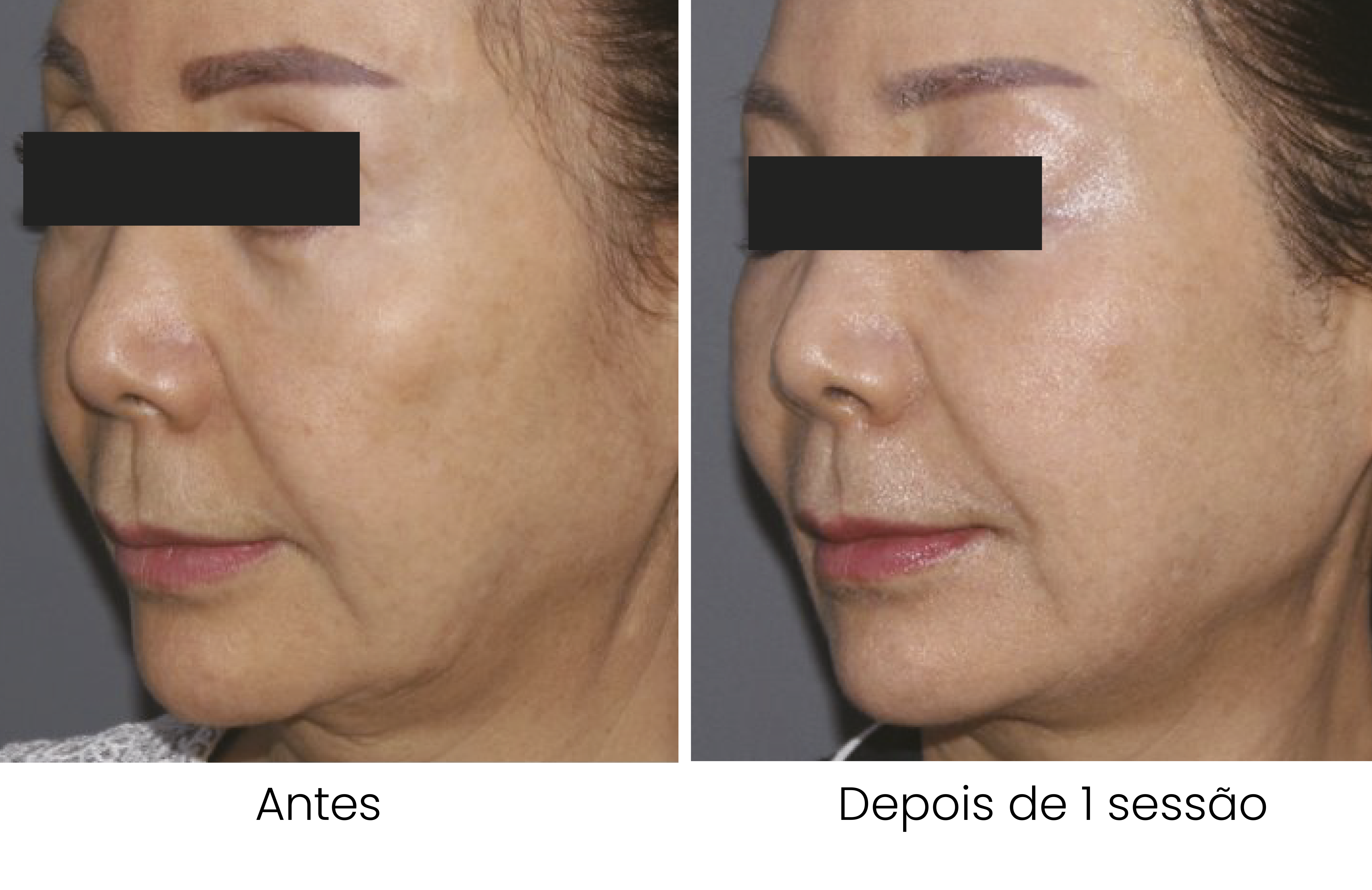 RF bipolar (imediato): aquecimento papilar/reticular; aumento de elasticidade; melhora de rugas finas; resultado visível imediato com manutenção típica ≥ 1 mês*.